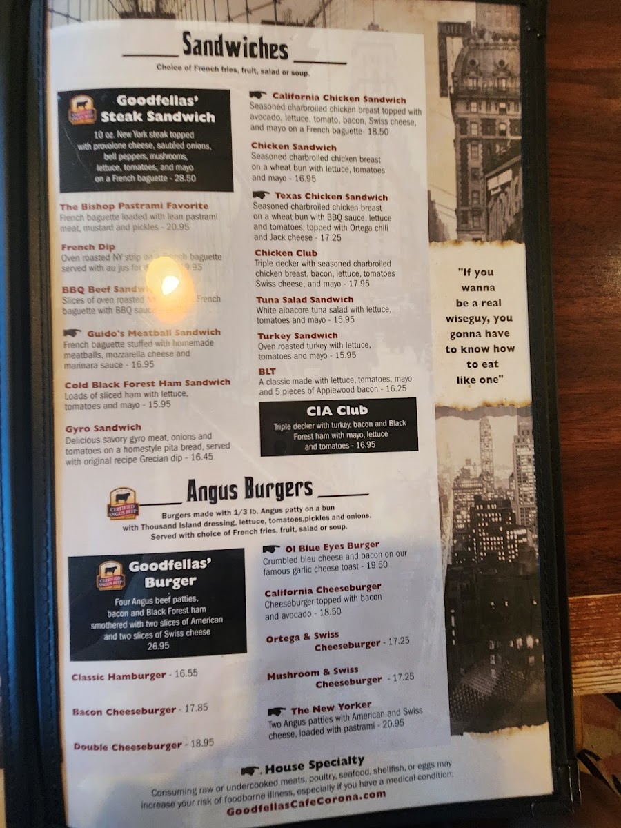 Goodfellas Cafe Menu